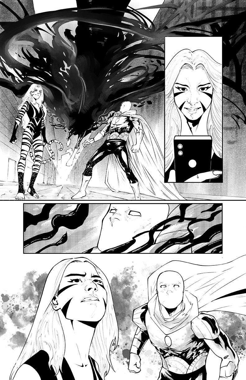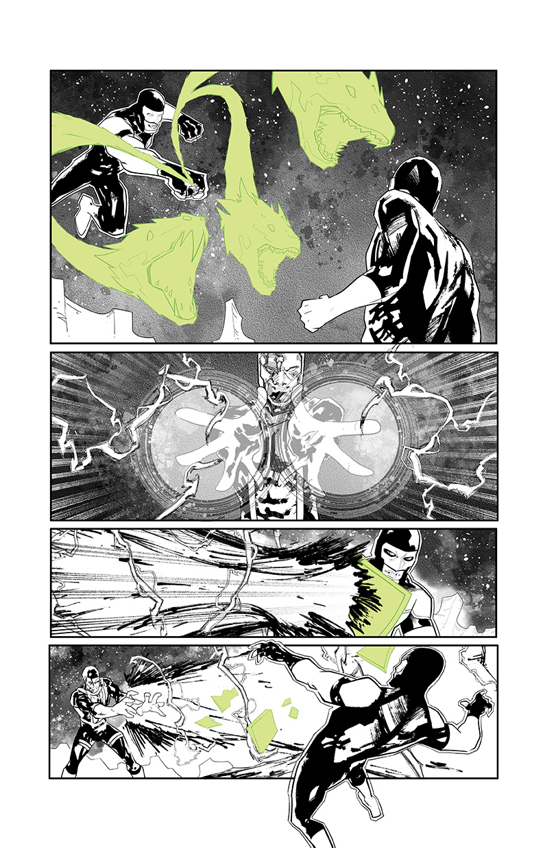David’s work is defined by cinematic composition, dynamic visual rhythm, and a striking use of light and shadow. His pages blend the clarity of Western superhero storytelling with the kinetic energy of manga and European comics, resulting in art that feels bold, fluid, and emotionally charged. Whether illustrating cosmic battles or intimate moments, his refined sense of contrast and motion brings every story to life—making his style both distinctive and highly sought after in today’s comics industry.